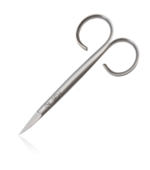 Professional cosmetic scissors within our manicure and pedicure product line. These nail scissors have a big profile. Their blades are 2 cm long. These special scissors for pedicure were designed to ensure a high-precision cutting action. They are 11 cm long. They have curved blades and sharp/sharp tip configuration.